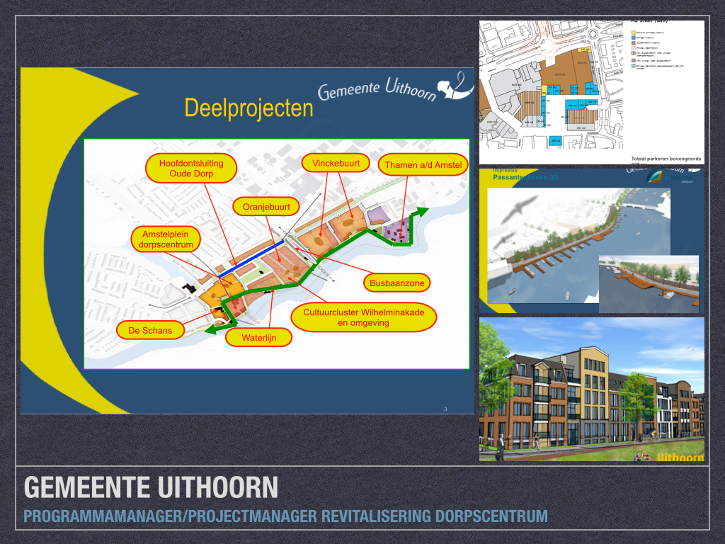 Verantwoordelijk voor de totale gebiedsontwikkeling van de herontwikkeling dorpscentrum (2 havens, 350 woningen, winkelcentrum, winkelsteiger, cultuurcluster en het openbaar gebied);